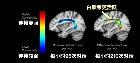 而麻省理工大学认知科学家Remeo,也通过脑成像技术发现:亲子对话越多,大脑中的白质束就越活跃,信息传递越高效,思维也就越活跃。