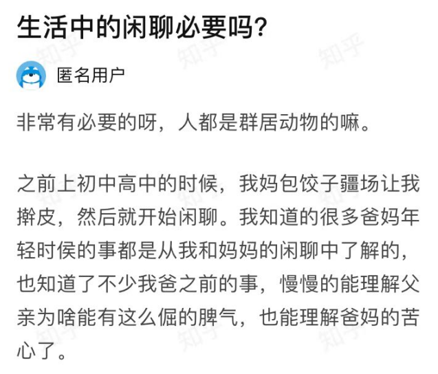 知乎上有人发帖提问:生活中的闲聊有必要吗?