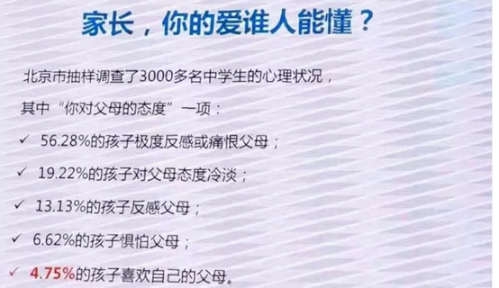 只有4.75%的孩子喜欢自己父母,极度反感或痛恨父母的孩子占比竟然是第一,高达56.28%!