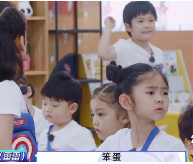 综艺节目《不要小看我》中,有一个叫做雷雷的小朋友,游戏开始之前,几个孩子起了冲突,雷雷突然站了起来,愤怒地大声喊道:笨蛋!笨蛋!三个笨蛋!