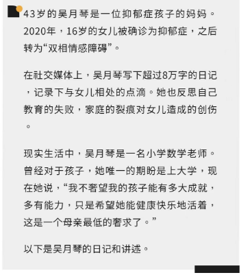 43岁的吴月琴用8万字,记录下了16岁女儿患上抑郁症后的生活日常。