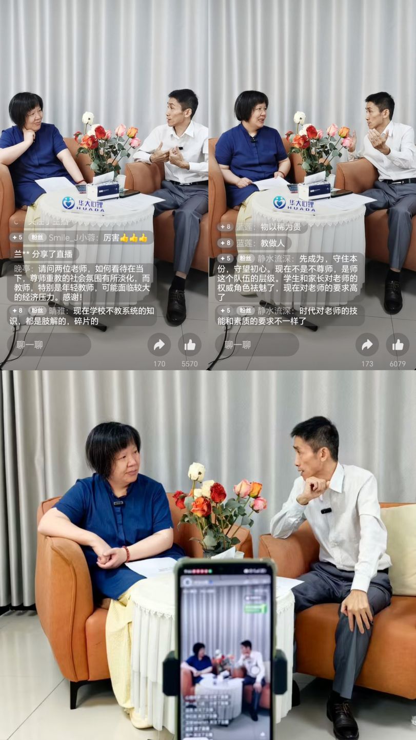 本次直播分别从心理辅导理论和一线实践经验出发,围绕教师常见的心理压力、职业倦怠及家校沟通等现实议题展开深入剖析。成忠播老师作为资深心理咨询师、生命教练大成心学文化系统创始人,从教师心理状态出发,引导教师回归初心、增强自我觉察;韩薇老师则作为湖北省心理援助专家组组长、家庭教育指导研究员,结合多年服务一线教师的经验,分享了实用的情绪调节策略和家校沟通技巧。