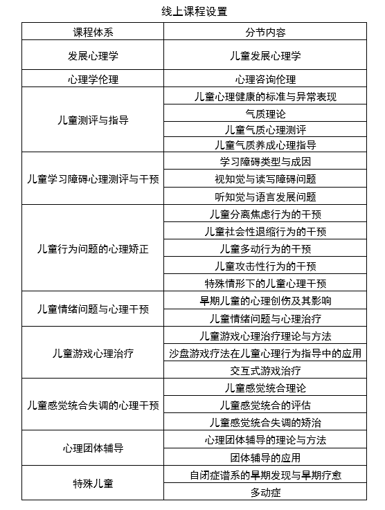 同时,儿童青少年的心理健康教育问题也已经成为关系国家和民族未来的重要公共卫生问题。2019年12月,国家卫生健康委、中宣部、教育部等12个部门日前印发《健康中国行动——儿童青少年心理健康行动方案(2019—2022年)》。方案明确提出,加强各级各类学校教师心理健康相关知识培训;到2022年底,50%的家长学校或家庭教育指导服务站点应开展心理健康教育;60%的二级以上精神专科医院设立儿童青少年心理门诊;30%的儿童专科医院、妇幼保健院、二级以上综合医院开设精神(心理)门诊;各地市设立或接入心理援助热线;儿童青少年心理健康核心知识知晓率要达到80%。2021年3月,《关于印发全国社会心理服务体系建设试点2021年重点工作任务的通知》提出,完善学生心理健康服务网络,建立心理辅导室的中小学校比例达100%,并配备专兼职教师,每学期至少开展1次面向家长和学生的心理健康教育。为了响应国家政策的号召,满足社会的急切需求,改善儿童的心理问题,提高儿童的心理健康程度,中国心理卫生协会联合中科博爱(北京)健康科技有限公司,整合国内多方心理服务等专家资源,精心打造了《儿童心理行为指导(师)技能培训》课程,培训事项如下: