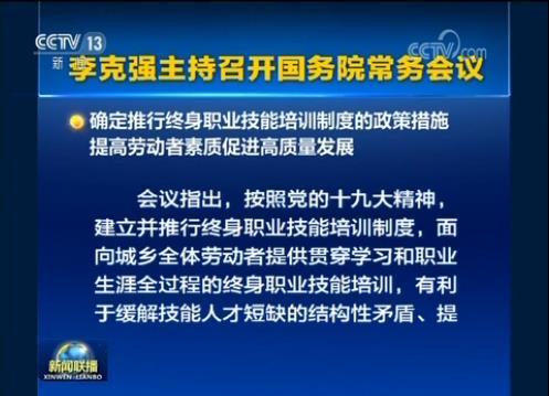 原标题:李克强主持召开国务院常务会议 确定推行终身职业技能培训制度的政策措施等
