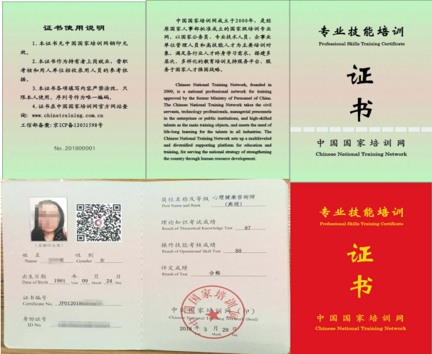中国国家培训网经原国家人事部批准,由人力资源和社会保障部正式授权,根据中华人民共和国《职业教育法》的有关规定,2018年开始推出心理健康咨询师等专业技能初级、中级、高级证书。