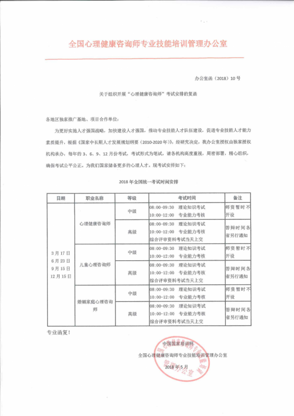 全国心理咨询师考试安排公告