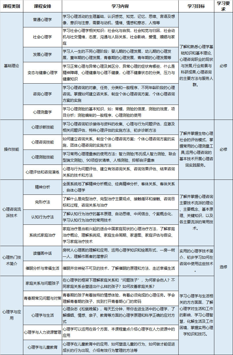 了解心理咨询基础流派,学习各流派心理咨询技术和常用方法。